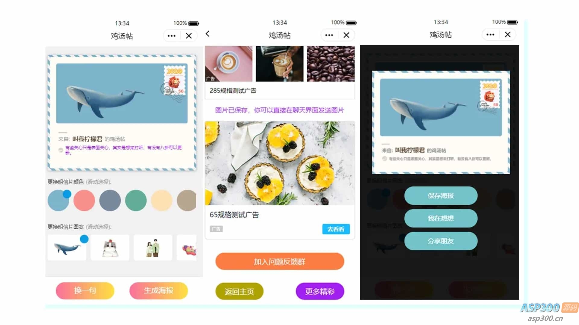 可以自定义卡片内容图标、邮票等元素,QQ微信小程序都可以直接使用,