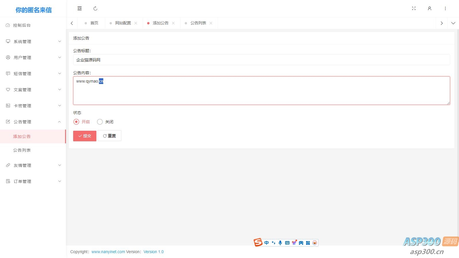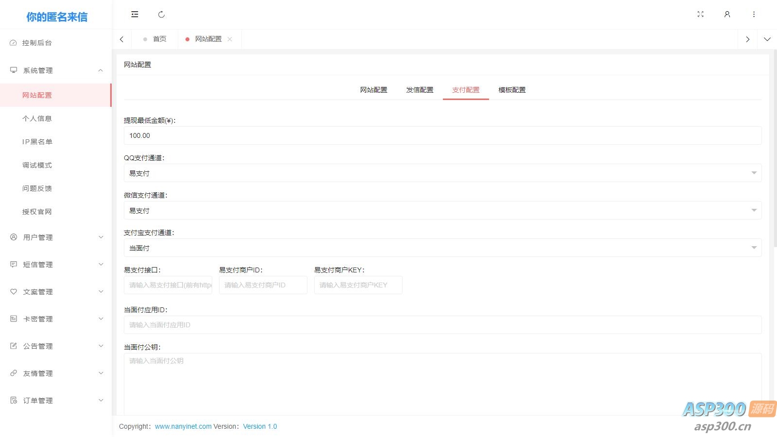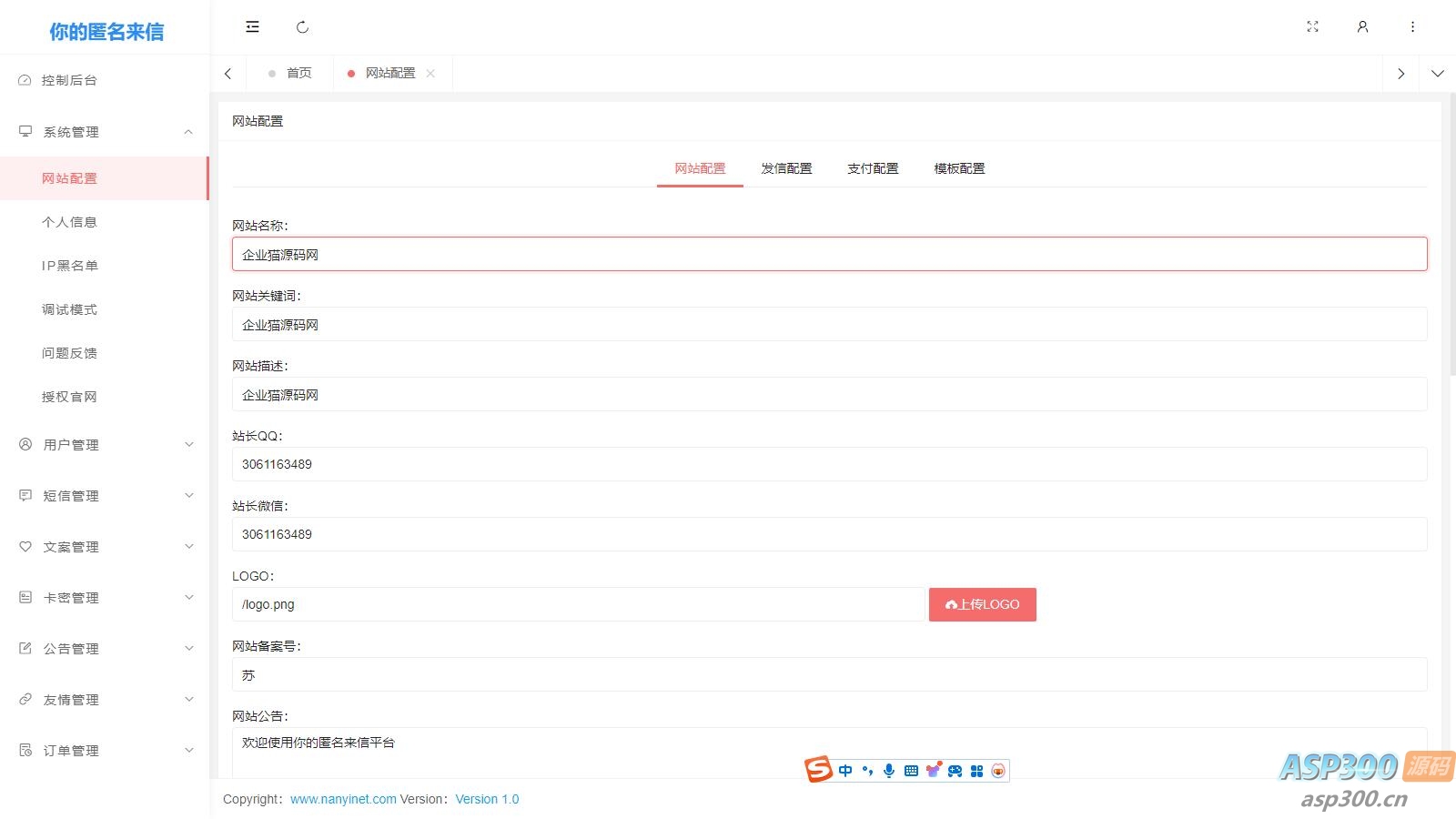 官网自营 免费源码 邮件类 2024-09-23 00:00:00 Nathan你的匿名来信系统H5版本V1.0(免费)开源 你的匿名来信H5一封你的来信源码/表白祝福短信程序/往来信/传话短信源码 支持邮件发信与手机短信发信“你的匿名来信”是最近某音上爆火的一个活动话题, 可以通过H5网站,编辑自己想要对某人说的话或者祝福,网站会把您想说的发给您预留的号码,特定话题。 声明:本站所有资源均来源于互联网收集,仅供学习参考使用,如若本站内容侵犯了原著者的合法权益,可联系我们进行处理。