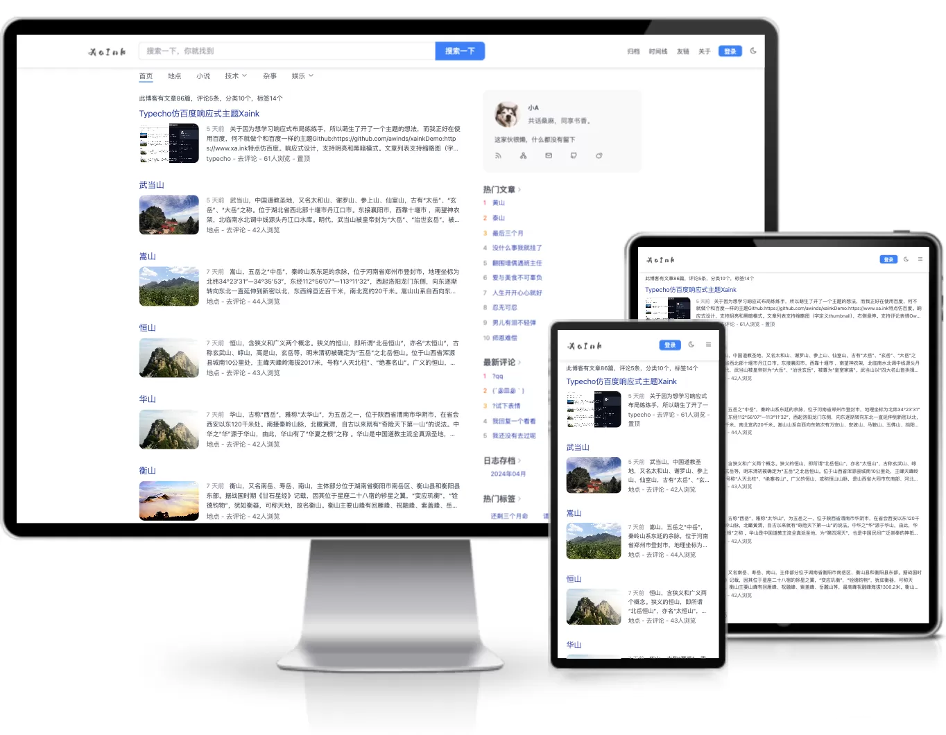 直接下载 zip 源码->解压后移动到 Typecho 主题目录->改名为xaink->启用。