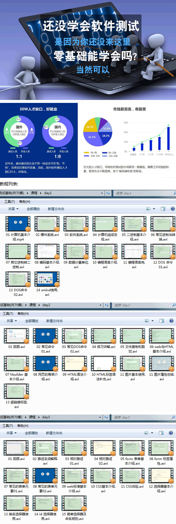官网自营 视频教程 IT技术 2021-06-02 00:00:00 软件测试基础(共70集) 软件测试基础(共70集),五天学会软件测试。视频AVI格式,超清。 如今测试行业是国内新兴起的一个行业, 因为兴趣选择零基础入门软件测试,因为高薪选择零基础转行软件测试,不管你是什么情况,这套教程就教你零基础如何学好软件测试。 ID:72284 声明:本站所有资源均来源于互联网收集,仅供学习参考使用,如若本站内容侵犯了原著者的合法权益,可联系我们进行处理。