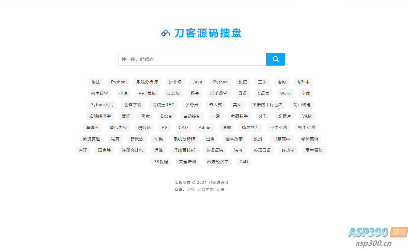这是一个基于thinkphp5.1+MySQL开发的网盘搜索引擎,可以批量导入各大网盘链接,例如百度网盘、阿里云盘、夸克网盘等。