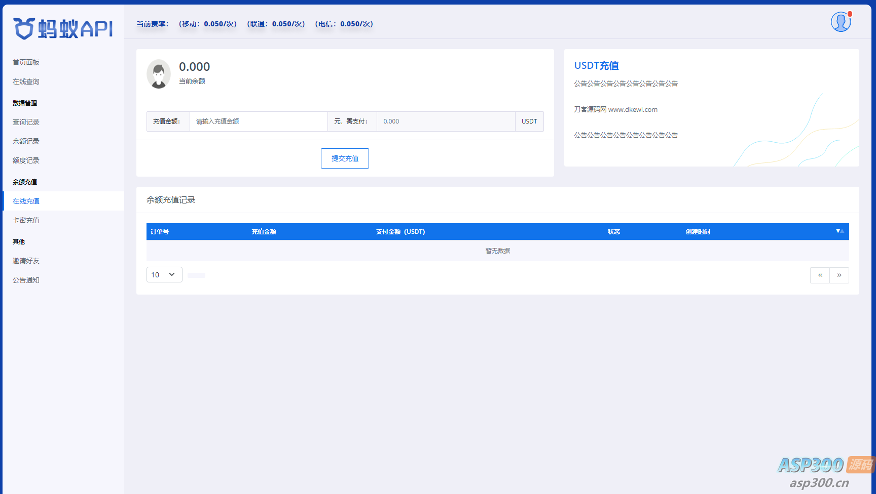 用户余额充值是对接usdt接口或者通过后台生成卡密,源码全开源,支持懂技术的人二次开发