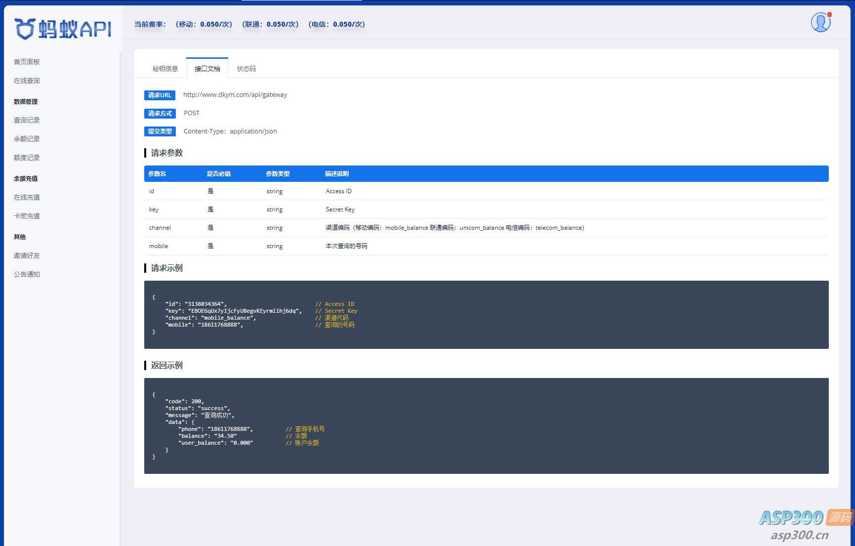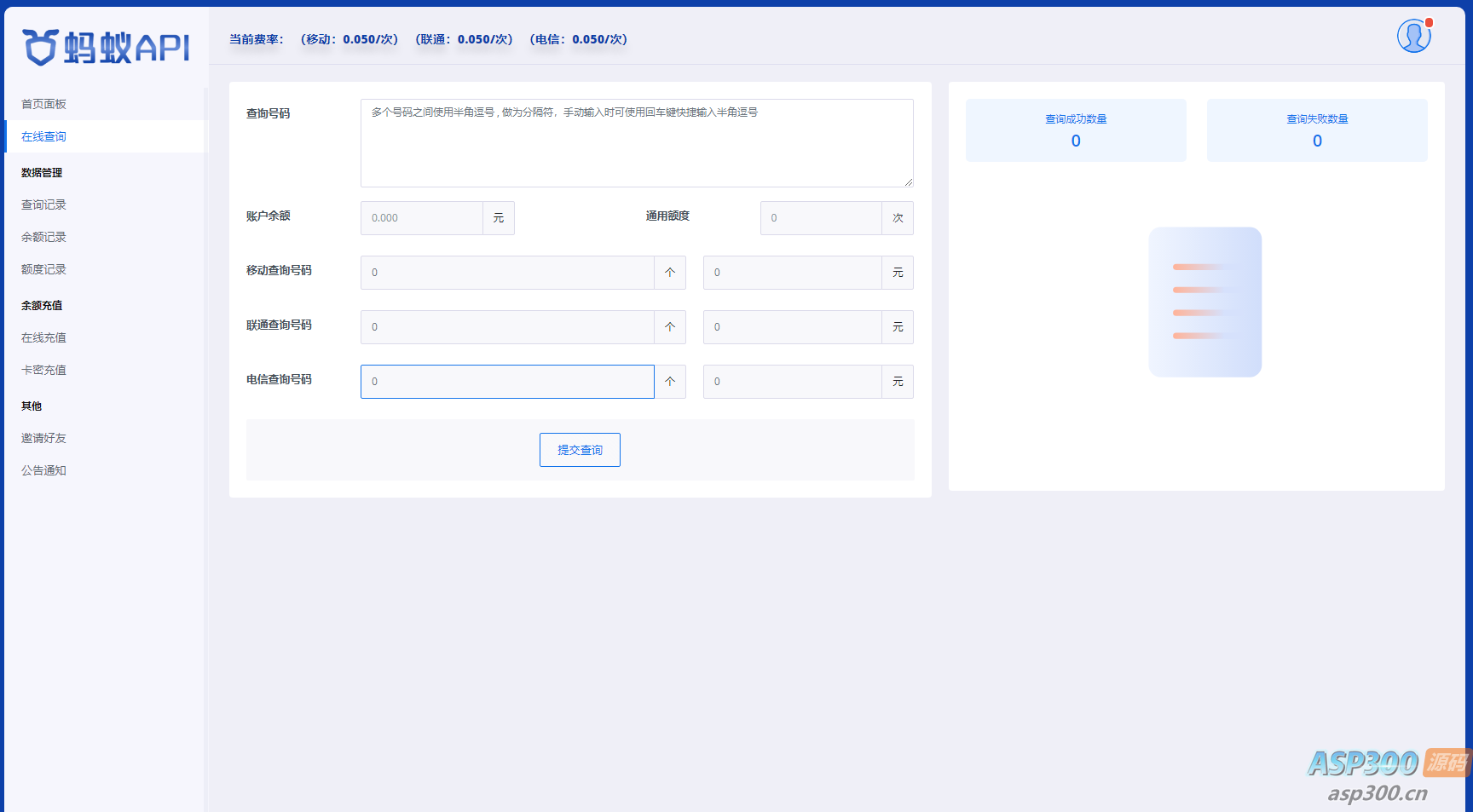 归属地和运营商等信息,系统支持用户中心在线查询和通过API接口对接发起查询,