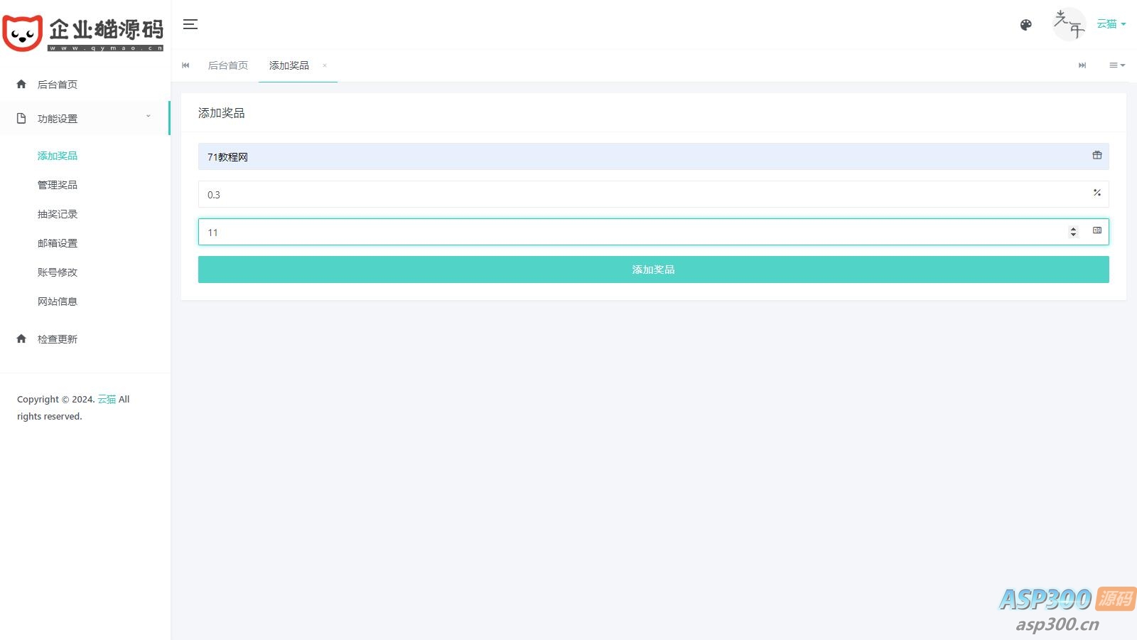 小猫咪抽奖系统PHP源码1.0