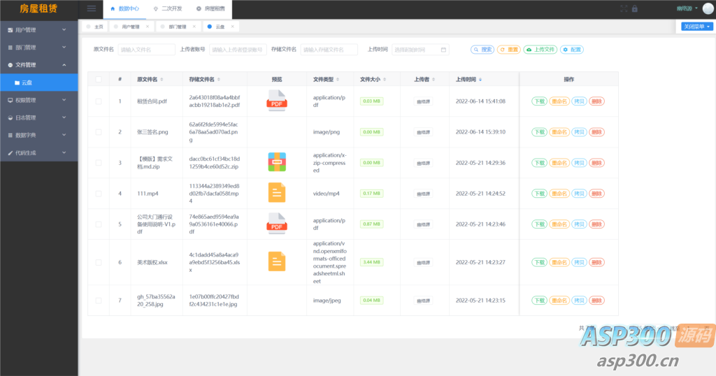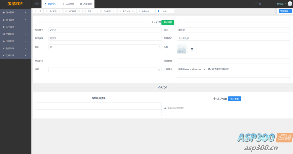 推测其原始版本可能是一个员工管理系统,经过二次开发后,功能被拓展和调整,现已完全适用于房屋租赁业务。