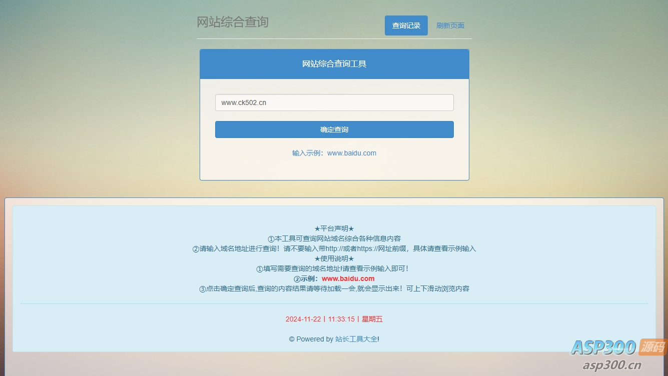 官网自营 VIP源码 垂直行业 2025-01-20 00:00:00 网站站长综合seo查询工具网站源码 网站综合网查询工具源码,站长seo综合查询工具提供网站收录查询和站长查询以及百度权重值查询等多个站长工具,免费查询各种数据,包括收录量、反链、域名Whois查询、ping查询、子域名查询 声明:本站所有资源均来源于互联网收集,仅供学习参考使用,如若本站内容侵犯了原著者的合法权益,可联系我们进行处理。